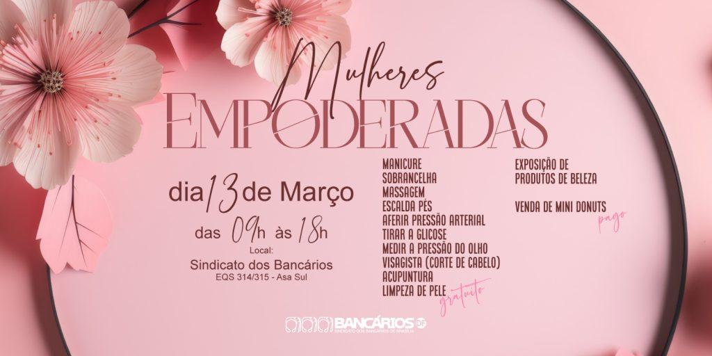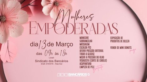 O evento acontecerá no dia 13 de março, das 9h às 18h, no Foyer do Sindicato (EQS 314/315), e contará com uma programação repleta de serviços e atividades gratuitas para as participantes. Para participar, é necessário inscrever-se. Estão disponíveis 100 vagas.