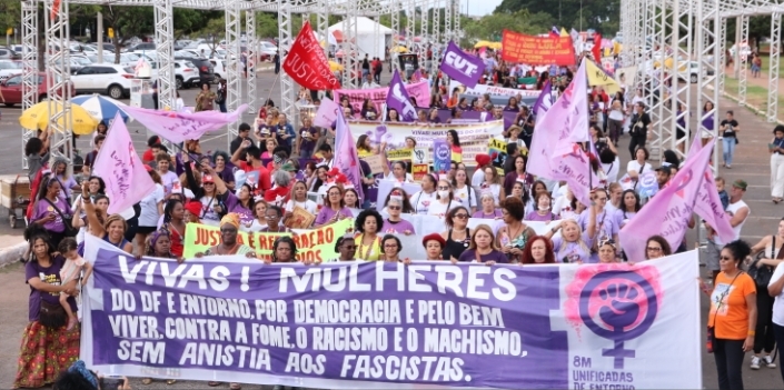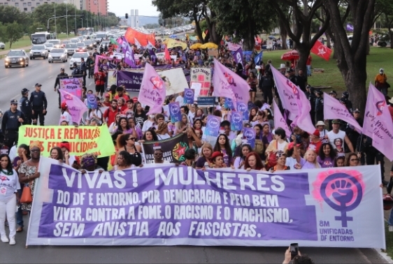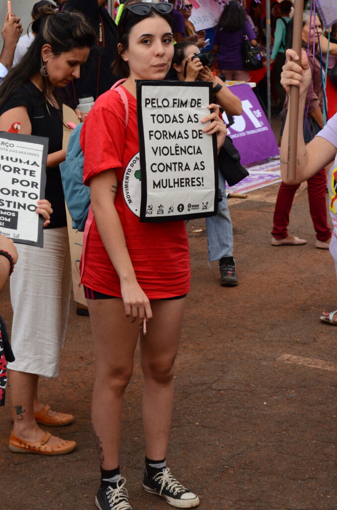 Mulheres do Distrito Federal e Entorno foram às ruas neste 8 de Março para expressarem suas angústias, seus anseios e suas inspirações para a luta contra os preconceitos, as discriminações e a violência. Entre as muitas reivindicações externadas em faixas, cartazes, discursos, cantos e brados coletivos, esteve sempre à frente a cobrança por respeito à vida, assim verbalizada: “Parem de nos matar, basta de feminicídio”.