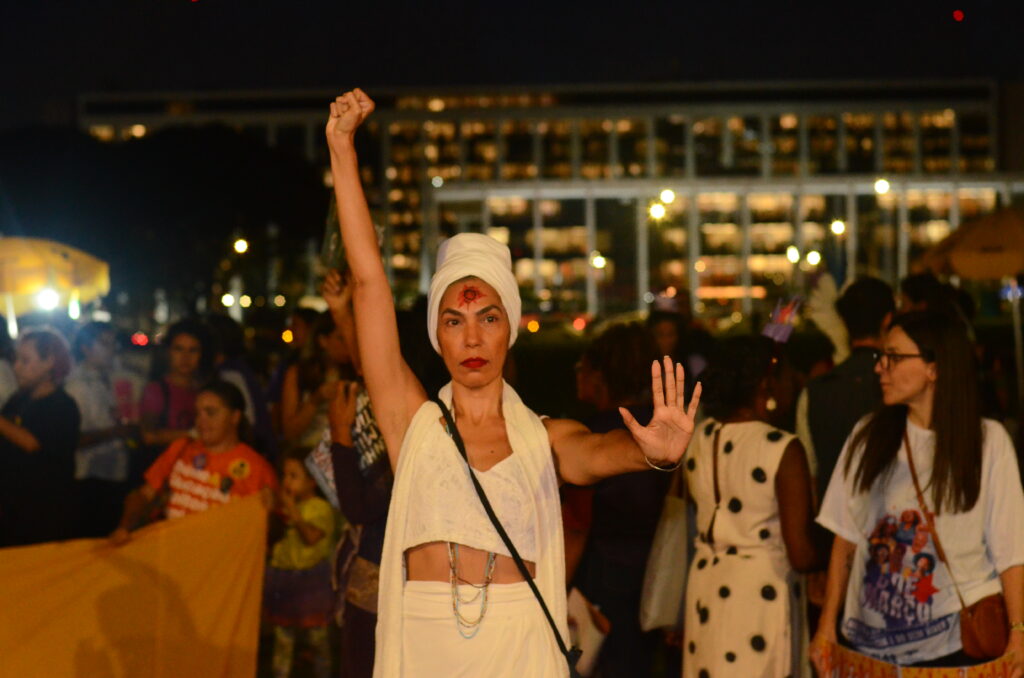 A Marcha das Mulheres partiu às 17h do Eixo Cultural Ibero-americano (antiga Funarte), em direção à Praça do Palácio do Buriti, pelo Eixo Monumental.