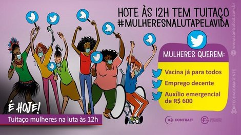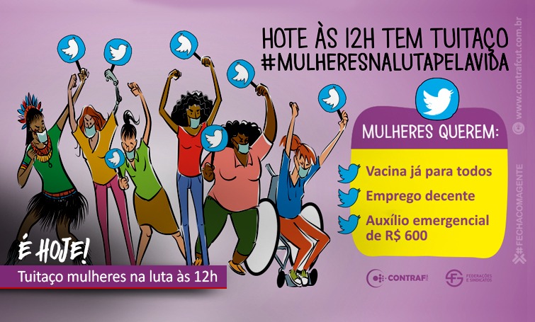 Será hoje, 8 de Março, ao meio-dia, o tuitaço para marcar a luta das mulheres. A Secretaria da Mulher da Confederação Nacional dos Trabalhadores do Ramos Financeiro (Contraf-CUT), junto com outras entidades do movimento feminista vai organizar essa manifestação digital. Às 12h, digite a hashtag #MulheresNaLutaPelaVida .
