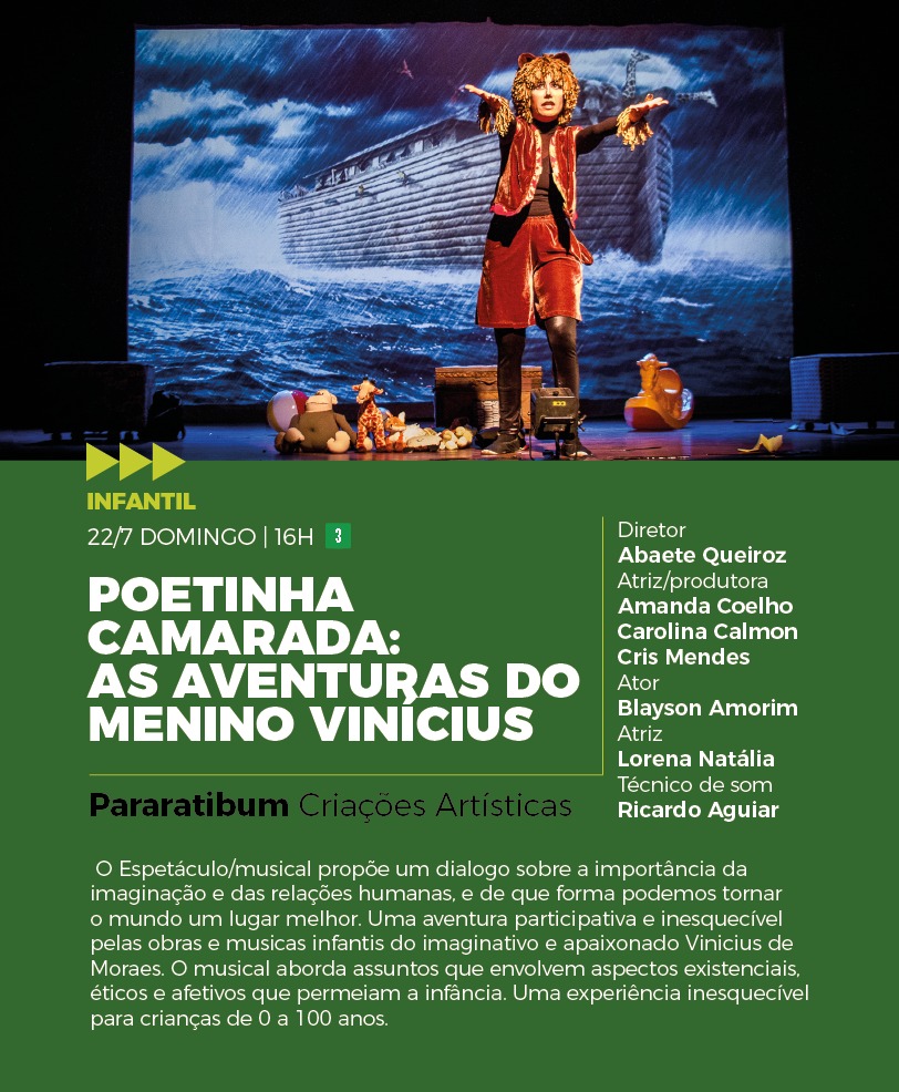 Da Pararatibum Criações Artísticas, o musical aborda assuntos que envolvem aspectos existenciais, éticos e afetivos que permeiam a infância. Uma aventura participativa e envolvente pelas obras e músicas infantis do imaginativo e apaixonado Vinicius de Moraes.