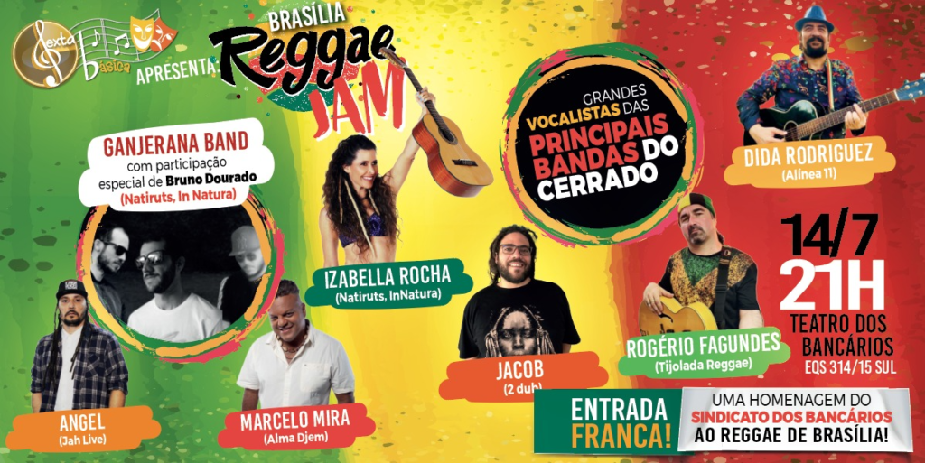 O reggae é um dos estilos musicais em que os brasilienses se destacam. Para celebrar a potência do DF no ritmo jamaicano, o Sindicato promove uma edição especial do Sexta Básica com vários artistas locais no dia 14 de julho, às 21h. O evento será realizado no Teatro dos Bancários com entrada franca.