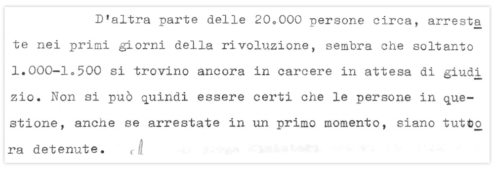 Um ofício enviado do Rio de Janeiro em 8 de julho de 1964 por Eugenio Prato, então embaixador italiano no Brasil, ao Ministério do Exterior da Itália – a Farnesina – cita que “foram efetuadas cerca de 20 mil prisões nos primeiros dias da revolução”. Até hoje, o número estimado de detenções nos dias seguintes ao golpe militar vinha de um único documento, produzido pela embaixada norte-americana no Brasil, que falava em “em torno de 5 mil pessoas”. Ele é mencionado no capítulo 3, parágrafo 67, do relatório final da Comissão Nacional da Verdade.