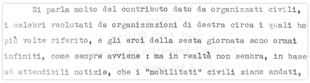 Outro informe ao qual tivemos acesso mostra como o Exército armou cidadãos civis, sobretudo os declaradamente de direita, para derrubar o governo e fazer “ações de limpeza” nas ruas – ou seja, prender pessoas. Intitulado “A situação em São Paulo”, o comunicado foi enviado em 8 de abril pelo consulado italiano de São Paulo à embaixada no Rio, e transmitido à Farnesina três dias depois.
