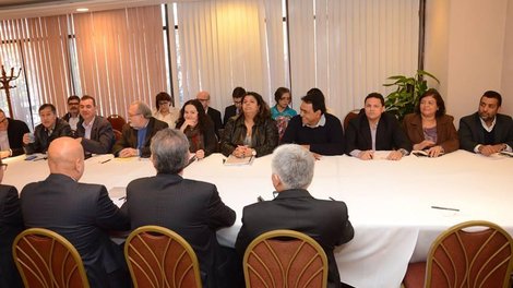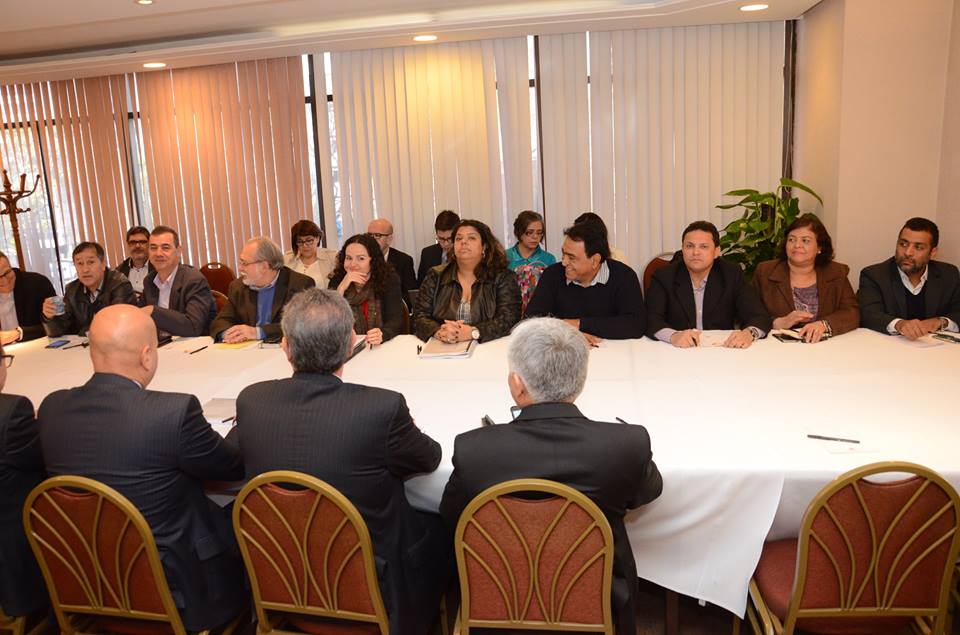 O presidente do Sindicato, Eduardo Araújo (primeiro da dir. para a esq.), durante as negociações com a Fenaban