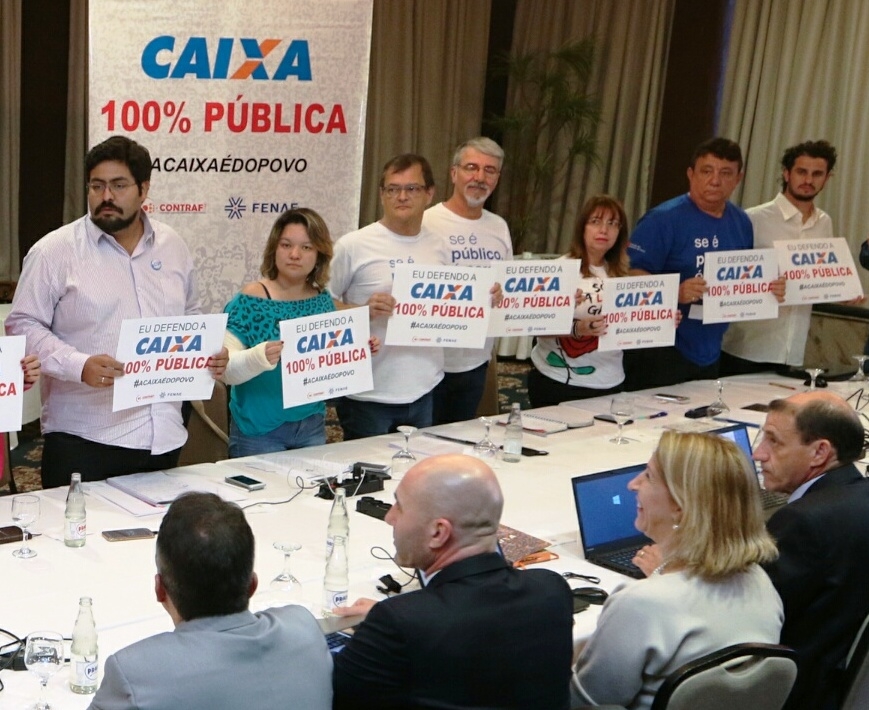 A Comissão insistiu em alguns pontos principais, entre eles a defesa da Caixa 100% pública, que foi motivo de uma manifestação dos representantes dos empregados da Caixa. A CEE firmou o compromisso em lutar contra o fatiamento da empresa e manutenção de todas as participações acionárias atuais.