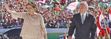 E, ao finalizar o curto discurso, após uma longa fala no Congresso Nacional, a presidenta Dilma Rousseff pediu apoio de todos, do leste a oeste, do norte a sul, prometendo governar o Brasil "com nenhum direito a menos, nenhum passo atrás, só mais direitos e passos à frente. Esse é o juramento que faço nessa praça".