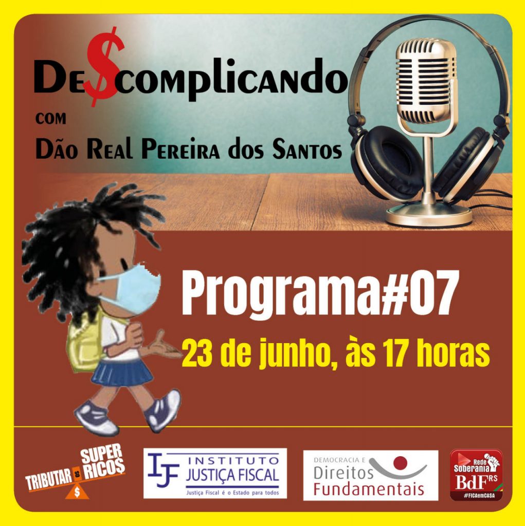 O auditor fiscal Dão Real Pereira dos Santos apresenta nesta quarta-feira (23), a partir das 17h, mais uma edição do programa De$complicando. O programa é fruto de uma parceria da Rede Soberania, Brasil de Fato RS, Instituto Justiça Fiscal, Democracia e Direitos Fundamentais e a Campanha Tributar os Super-Ricos.