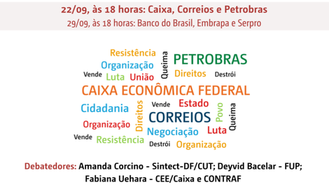 Na próxima terça, dia 29, o debate tratará dos enfrentamentos dos trabalhadores do Banco do Brasil, Embrapa e Serpro, igualmente ameaçados pelo governo Bolsonaro.
