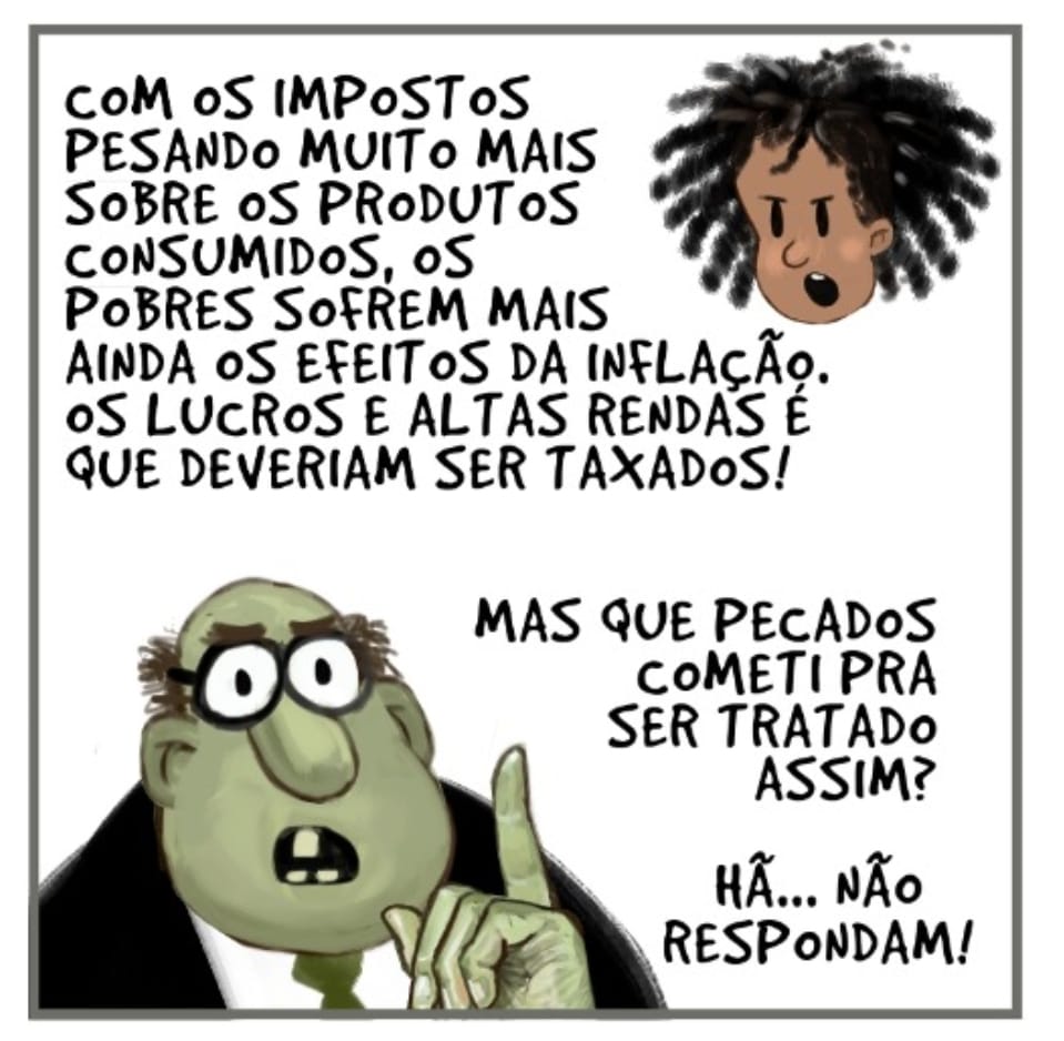 Mais de 50% da receita de impostos do país vem do consumo, onde os mais pobres destinam quase toda sua renda. Assim, pagam muito mais tributos proporcionalmente que os ricos.