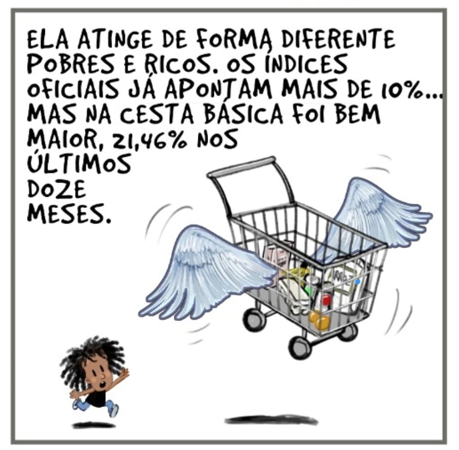 A nova história em quadrinhos de Niara, a mascote da campanha “Tributar os Super-Ricos”, traz dados que revelam como a inflação atinge de forma completamente diversa os pobres e os ricos. As altas nos preços que assombram os desvalidos fazem a alegria dos afortunados.
