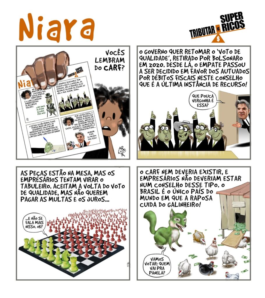 Sem o voto de qualidade, o empate nos julgamentos do Carf acerca de dívidas com a Receita passou a beneficiar os infratores. Como diz Niara, a mascote da campanha Tributar os Super-Ricos, “a raposa passou a tomar conta do galinheiro”, já que o Carf é composto por igual número de representantes da Receita Federal e das grandes corporações.