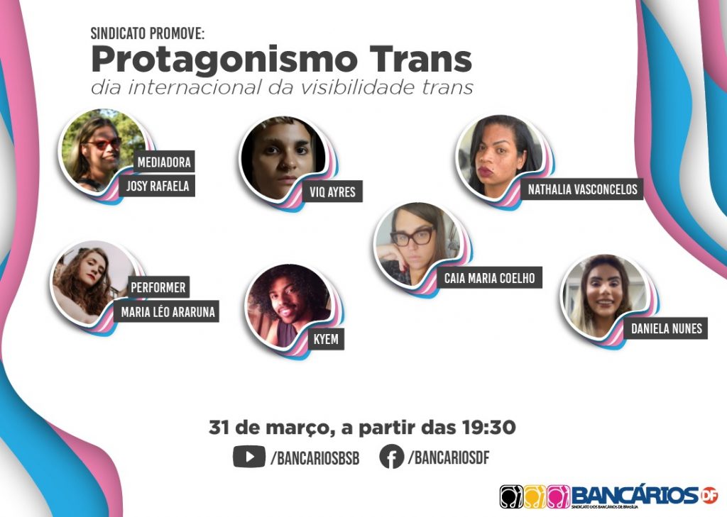 Participam da live Maria Léo Araruna, atriz, performer e escritora; Josy Rafaela, bancária do BB, delegada sindical e co-fundadora da ONG Rede Distrital Trans; Daniela Nunes, assistente social, estudante de biomedicina e Miss Beleza T Distrito Federal; Nathália Vasconcelos, presidente da Rede Distrital de Pessoas Trans do Distrito Federal e do Entorno e filiada à Rede Trans Brasil; Caia Maria Coelho, transfeminista, pesquisadora, cineasta, militante trans e travesti viva; Viq Ayres, artista não-binárie que integra a Coletiva MULEsta de Mulheres e Afeminadas do Underground de Pernambuco e a Frente Estadual Pela Legalização do Aborto; e Kyem, homem negro e trans, doutorando em energia na Universidade Federal do ABC.