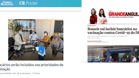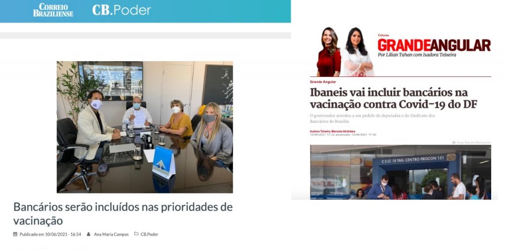 Teve grande repercussão entre os veículos de comunicação do Distrito Federal, nesta quinta-feira (10), a informação de que o governador Ibaneis Rocha (MDB) acatou pedido do Sindicato dos Bancários e decidiu incluir a categoria bancária entre as prioridades na vacinação contra a covid-19. Ele se comprometeu a abrir o agendamento dos bancários depois da imunização dos professores.