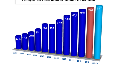 Em 2002, os ativos de investimentos da FUNCEF somavam pouco menos de R$ 10 bilhões. De 2003 para cá, houve um crescimento expressivo, demonstrado no gráfico abaixo. Como podem ser observados, os recursos garantidores dos planos de benefícios cresceram mais de 267% de lá para cá.