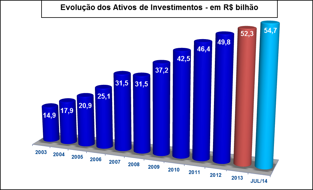 A crise iniciada em 2008, ainda não superada, vem afetando os retornos de investimentos, especialmente no caso de ativos de renda variável. Todavia, apesar da conjuntura adversa, em nenhum exercício a FUNCEF sofreu redução do total de ativos de investimento, mesmo no momento de ápice da tormenta econômica.