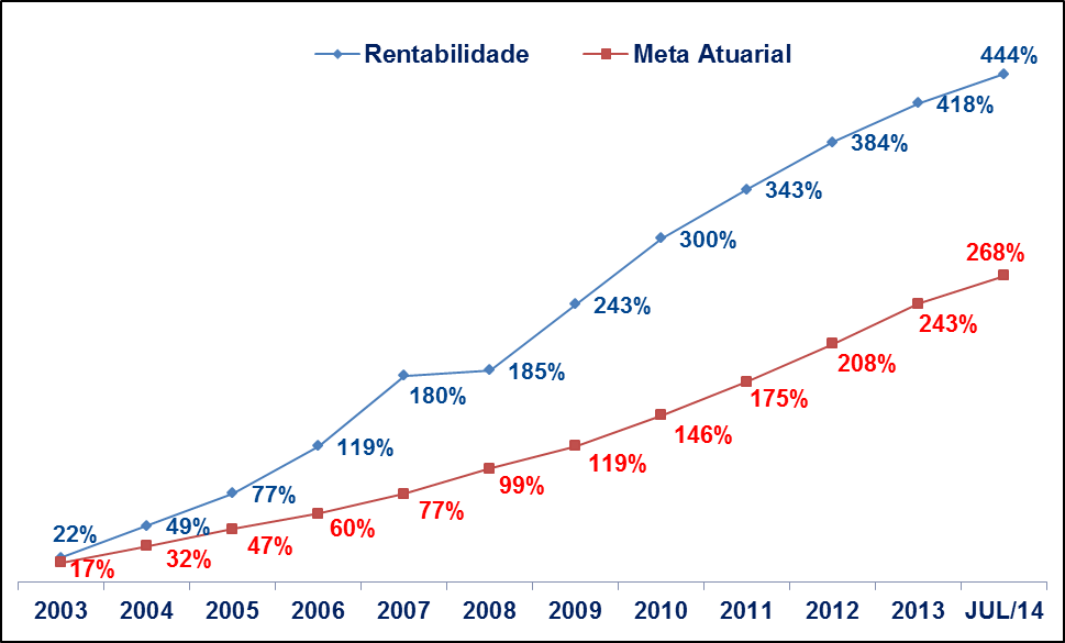 Chamamos a atenção especialmente para os montantes dispendidos com reajustes reais dos benefícios saldados, concedidos de 2007 em diante, cujo custo superou os R$ 3,6 bilhões, em valores de julho/2014. Caso não tivessem ocorrido tais reajustes reais, o déficit acumulado até 2013, de aproximadamente R$ 3,0 bilhões, não existiria. Ao contrário, o plano teria encerrado o exercício com superávit, o que se daria em detrimento da melhoria da qualidade de vida dos aposentados e pensionistas.