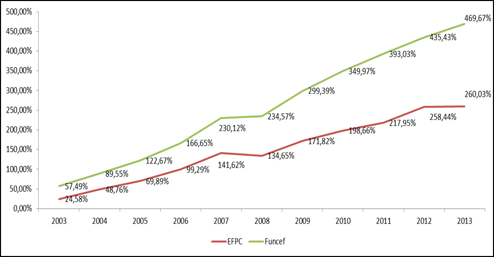 Corroboram com a competência da gestão da FUNCEF no período os dados comparativos com o sistema fechado de previdência complementar. No gráfico a seguir é apresentada a evolução do Ativo Total da FUNCEF frente à evolução do mesmo indicador referente ao conjunto das EFPCs, de acordo com dados divulgados pela ABRAPP, entidade que representa os fundos de pensão.