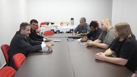 Novo superintendente do BB, Otaviano Campos (à esquerda), se reúne com a diretoria do Sindicato