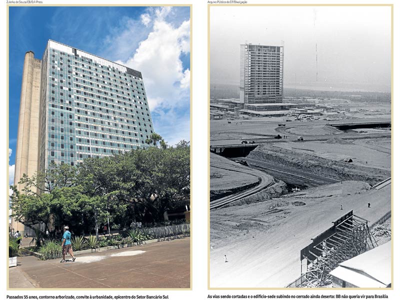 Não é um palácio, não é obra de Oscar Niemeyer nem de Lucio Costa, mas é considerado um dos mais bem resolvidos projetos arquitetônicos de Brasília. O sede I do Banco do Brasil, no Setor Bancário Sul, tem múltipla importância: está no memorial descritivo do Plano Piloto, foi inaugurado no mesmo dia que a nova capital e é um exemplo de como a arquitetura moderna pode ser um convite à urbanidade, pode ser bela e, ao mesmo tempo, gregária, confortável, imponente. E pode conter aquilo que Niemeyer gostava de atribuir às próprias criações: provocar espanto, mas não pela beleza escultórica, e sim pela qualidade do conjunto. Era, até há pouco tempo, o epicentro do SBS.