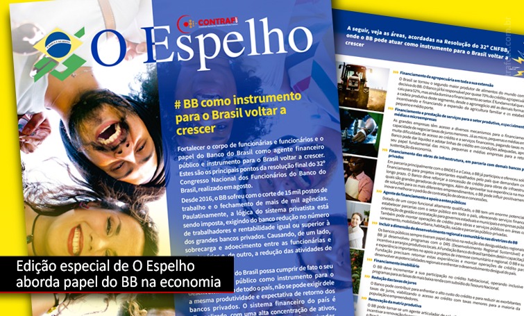 Como forma de divulgar as resoluções finais do 32º Congresso Nacional dos Funcionários do Banco do Brasil, realizado no dia 8 de agosto, a Confederação Nacional dos Trabalhadores do Ramo Financeiro (Contraf-CUT) disponibilizou na área restrita de seu site uma edição especial do boletim O Espelho.