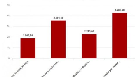 por dependente subiria de R$ 2.275,08 para R$ 4.286,28 por ano. O valor deduzido com gastos de educação chegaria a R$ 6.709,90, contra R$ 3.561,50 atualmente.
