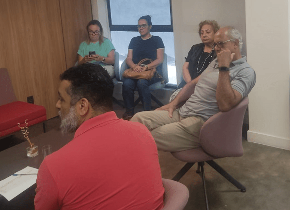 Estiveram presentes na reunião o secretário de Aposentados do Sindicato, José Wilson; o presidente da entidade, Eduardo Araújo; a diretora da Fetec-CUT/CN Marlene Dias; e Rodrigo Britto, presidente da Fetec-CUT/CN. Representando as entidades parceiras marcaram presença José Augusto de Oliveira (AABB), Nelson Batata (FENABB), Mauro Queirós (Cooperforte), Tatiana e Rariane Masseno (ANABB), Luiz de Oliveira e Raimundo, ambos da AFABRB.