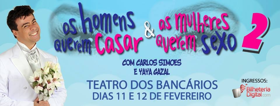 Após 10 anos em cartaz, chega a segunda parte da comédia “Os Homens querem casar e as mulheres querem sexo”, no Teatro dos Bancários, nos dias 11 e 12 deste mês. Bancários sindicalizados pagam meia-entrada.