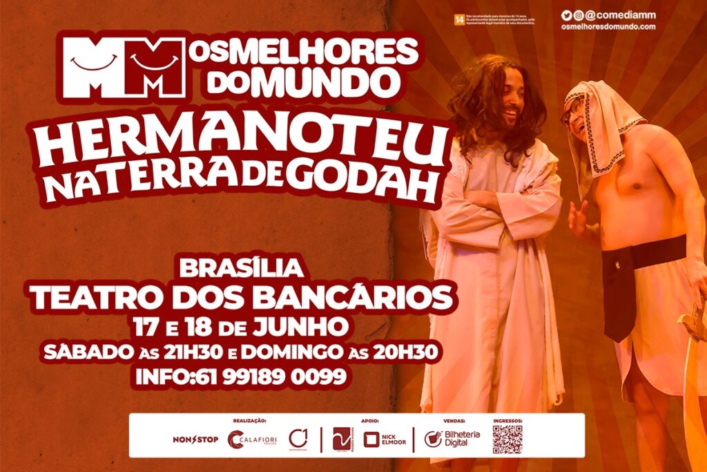 Eles estão de volta. O Teatro dos Bancários recebe nos dias 17 e 18 de junho o sucesso 'Hermanoteu na Terra de Godah', o espetáculo mais conhecido da Cia. de Comédia Os Melhores do Mundo. Bancários sindicalizados compram dois ingressos pelo preço de meia-entrada.