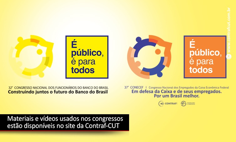 A Confederação Nacional dos Trabalhadores do Ramo Financeiro (Contraf-CUT) disponibilizou os materiais do 37º Congresso Nacional dos Empregados da Caixa Econômica Federal (Conecef) e do 32º Congresso dos Funcionários do Banco do Brasil (CNFBB), realizados no sábado (7) e domingo (8), respectivamente.