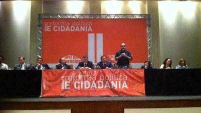 Na noite desta segunda-feira (25), centenas de militantes, sindicalistas e parlamentares, lotaram o auditório da Casa de Portugal, em São Paulo, para participar do debate "Reforma Política e Cidadania", organizado pelo deputado federal Vicente Cândido (PT-SP).