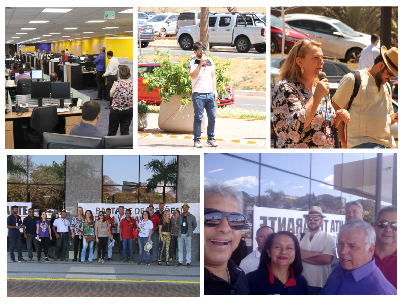 No mesmo dia em que está marcada uma nova rodada de negociação entre a Comissão de Empresa dos Funcionários e o Banco do Brasil, nesta quinta-feira (23), bancárias e bancários de Brasília protestavam pela manutenção das conquistas do Acordo Coletivo e da Convenção Coletiva de Trabalho. A mobilização foi organizada pelo Sindicato em frente ao Edifício BB, no Setor de Autarquias Norte.