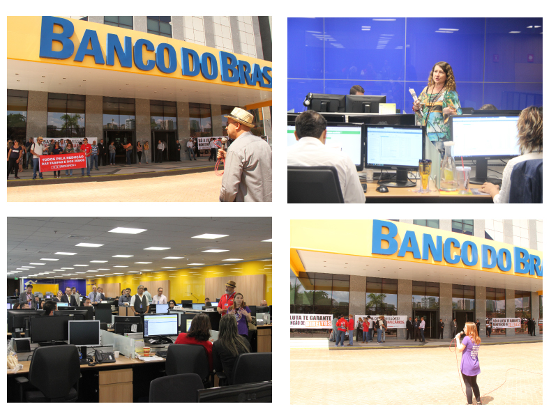 Durante a atividade, diretores do Sindicato e da Federação dos Bancários do Centro Norte (Fetec-CUT/CN) distribuíram a nova edição do Informativo Espelho pelos departamentos do prédio. Ao meio dia, os representantes dos trabalhadores esclareceram dúvidas e convocaram os bancários à luta.