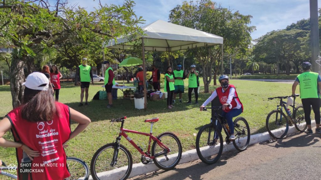O Pedal dos Bancários contou com tenda à sombra, com água, água de coco e frutas para garantir a hidratação e o bem-estar dos amantes do ciclismo.