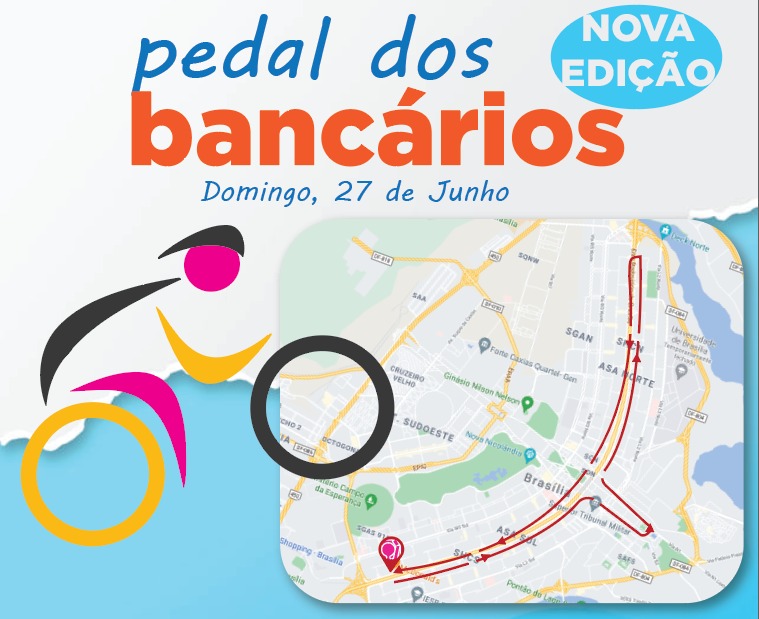 Calibre os pneus, confira os equipamentos de segurança e separe a máscara porque neste domingo (27) tem mais um Pedal dos Bancários. Desta vez, a atividade organizada pelo Sindicato vai percorrer 35 km com um pelotão formado por bancários, bancárias e seus familiares e amigos. A concentração está marcada para 8h em frente à sede do Sindicato (EQS 314/15), com saída às 9h.