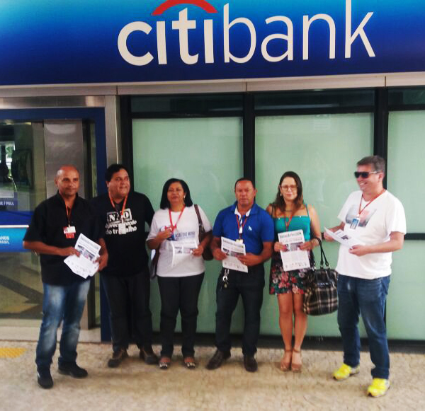 Os bancários de Brasília participaram nesta terça-feira (15) da primeira Jornada Internacional de Luta no Citibank. O ato, que cobra a manutenção dos postos de trabalho na instituição, foi realizado no Brasil, na Colômbia e na Argentina, países onde banco anunciou que haverá a venda do segmento de varejo. Em Brasília, diretores do Sindicato visitaram agências e dialogaram com os trabalhadores.