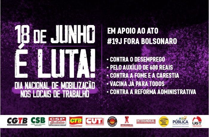 Dia 18 faremos um diálogo direto com nossa base – os trabalhadores – sobre essa situação de tragédia que vivemos e o dia 19 será o dia do Fora Bolsonaro nas ruas