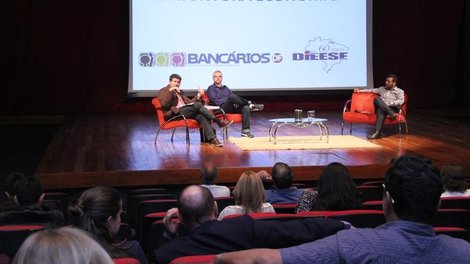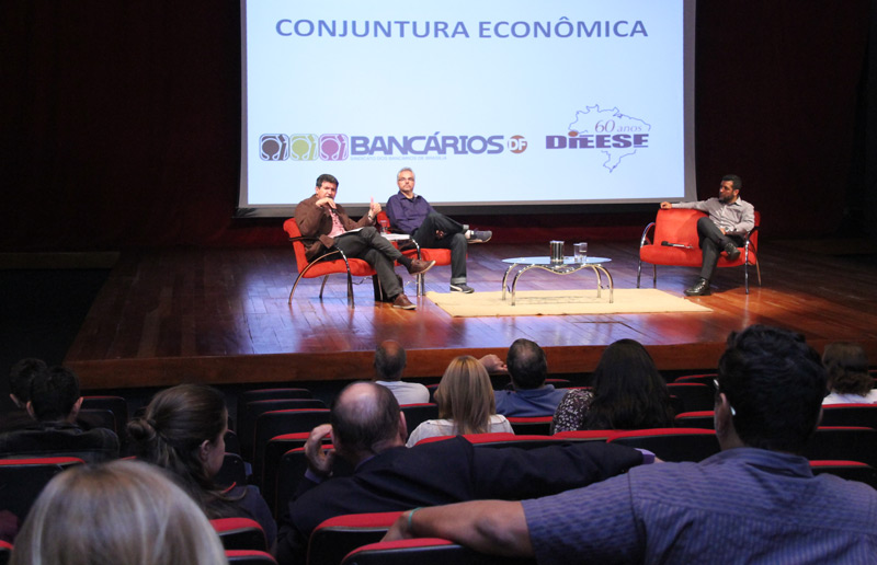 Neste momento de mobilização e de organização, com a proximidade da Campanha Nacional 2015, o Sindicato promoveu nesta terça-feira (28), no Teatro, uma plenária de conjuntura política e econômica do país, para nortear e municiar os bancários e bancárias do DF sobre o cenário em que se darão as negociações. Participaram como expositores, representantes do Departamento Intersindical de Assessoria Parlamentar (Diap) e do Departamento Intersindical de Estatística e Estudos Socioeconômicos (Dieese).