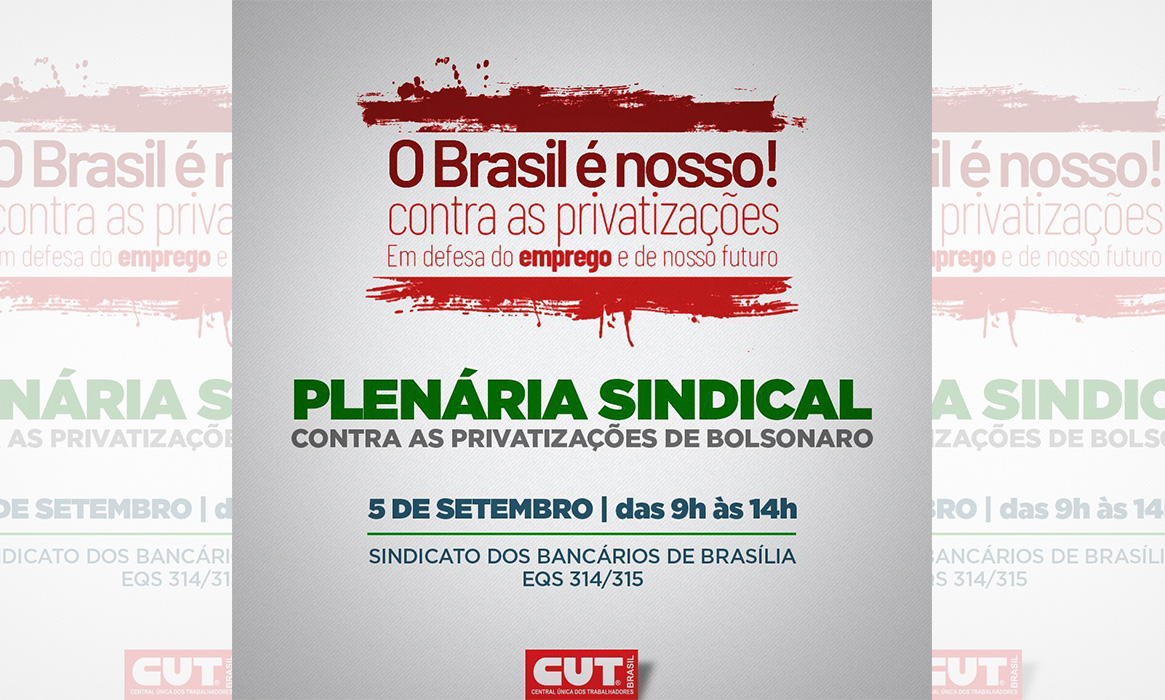 Entidades sindicais CUTistas se reunirão em plenária nesta quinta-feira (5) para articular um plano de lutas capaz de embarreirar as privatizações das empresas estatais, impostas pelo projeto político do presidente Jair Bolsonaro (PSL). A atividade terá início às 9h, no Sindicato dos Bancários.