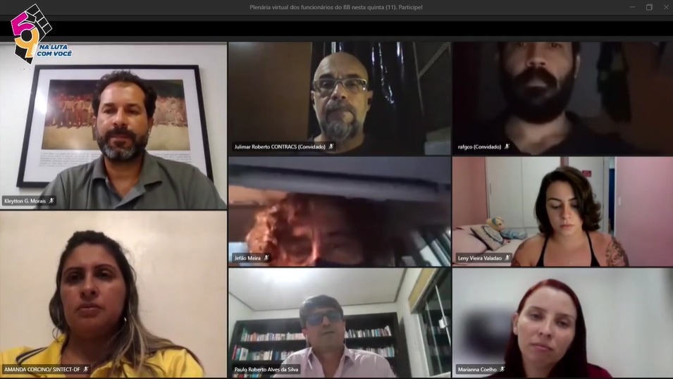 A confiança na mobilização está também alicerçada na aliança com trabalhadores de várias outras categorias, como vigilantes, ecetistas, rodoviários, comerciários, trabalhadores da limpeza urbana e bombeiros civis. A presença na plenária virtual da presidenta do Sindicato dos Trabalhadores dos Correios, Amanda Corcino, e do dirigente da Confederação Nacional dos Trabalhadores no Comércio e Serviço, Julimar Roberto, expressa a solidariedade de classe alcançada pelo movimento em defesa do BB e de seus funcionários.