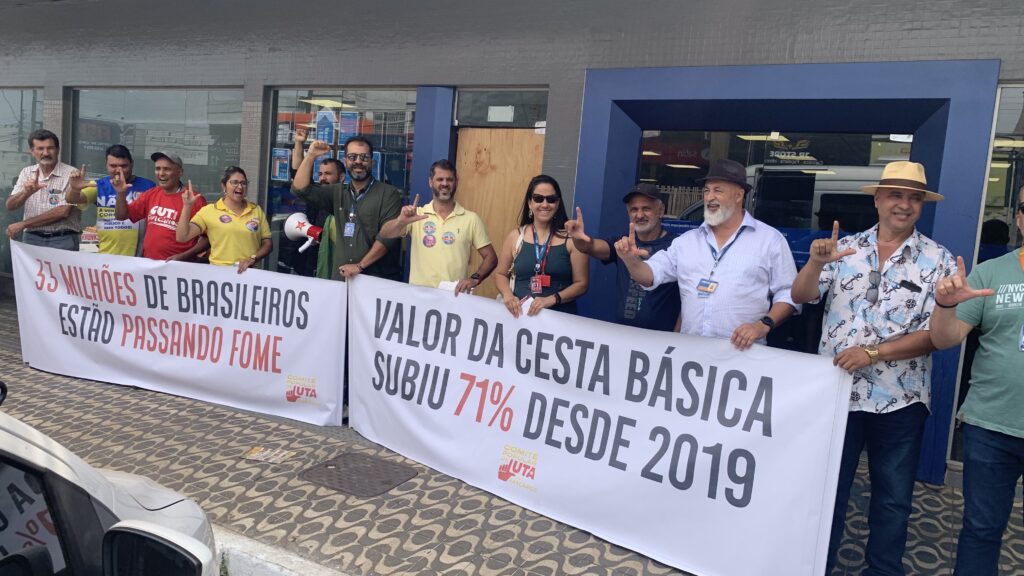 “A escolha do nosso voto deve seguir nossa consciência. E nossa consciência dialoga com elementos concretos, como a fome, a moradia, o acesso à educação, à saúde. O governo federal tenta comprar a consciência, sendo este desgoverno o responsável pelos ataques aos aposentados, às universidades públicas, ao programa Minha Casa, Minha, além de atacar benefícios sociais e políticas públicas imprescindíveis para o povo brasileiro”, frisou o presidente do Sindicato, Kleytton Morais, durante a fala na atividade.