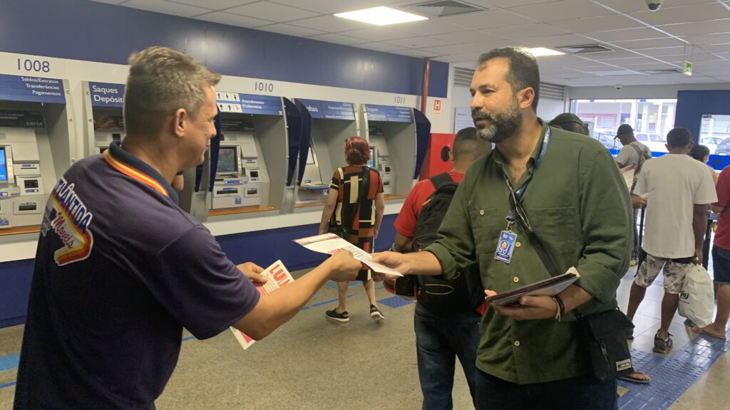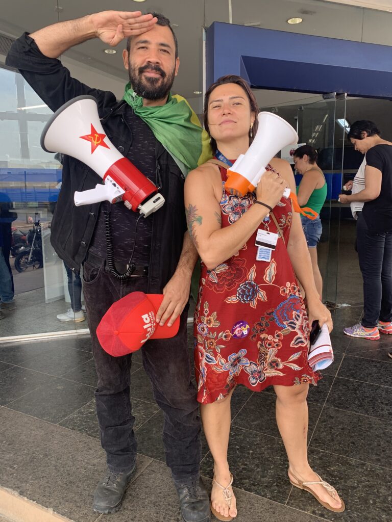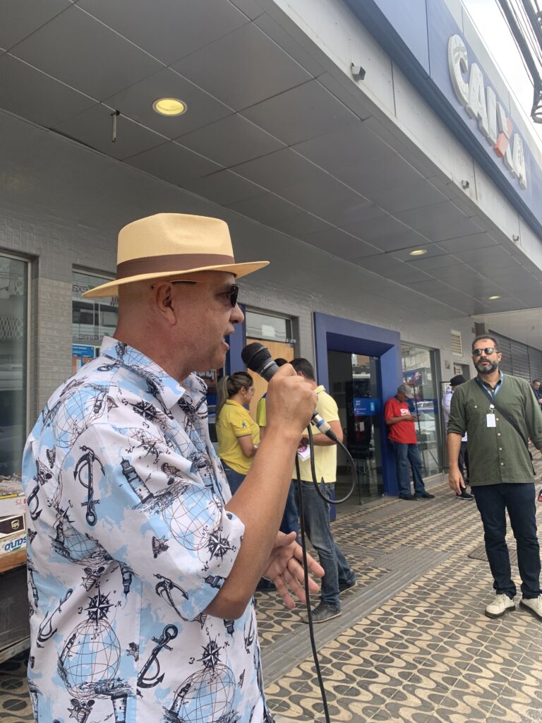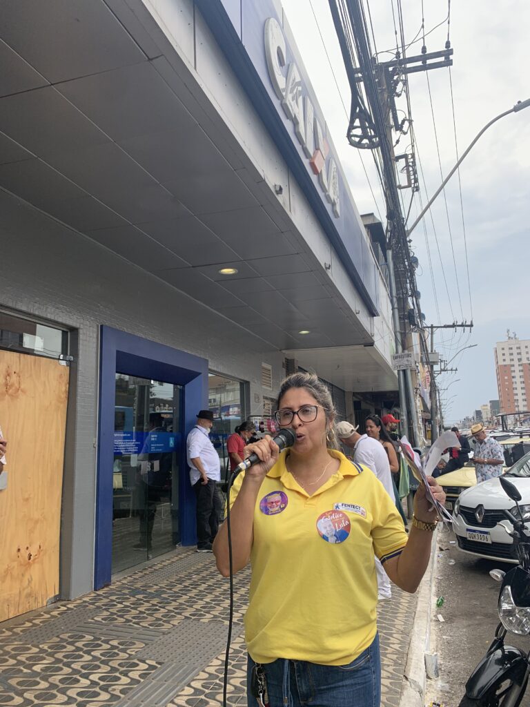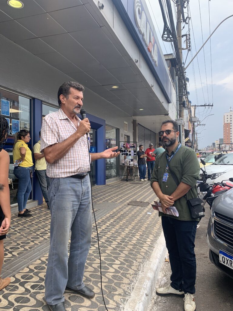 Ao lado da presidenta do Sintect-DF, Amanda Corsino, Kleytton também lembrou das ameaças direcionadas às empresas públicas, como os Correios, os bancos do Brasil e a Caixa. Essas empresas são fundamentais para a soberania nacional e o acesso de todos os brasileiros e brasileiras aos serviços públicos e de qualidade.
