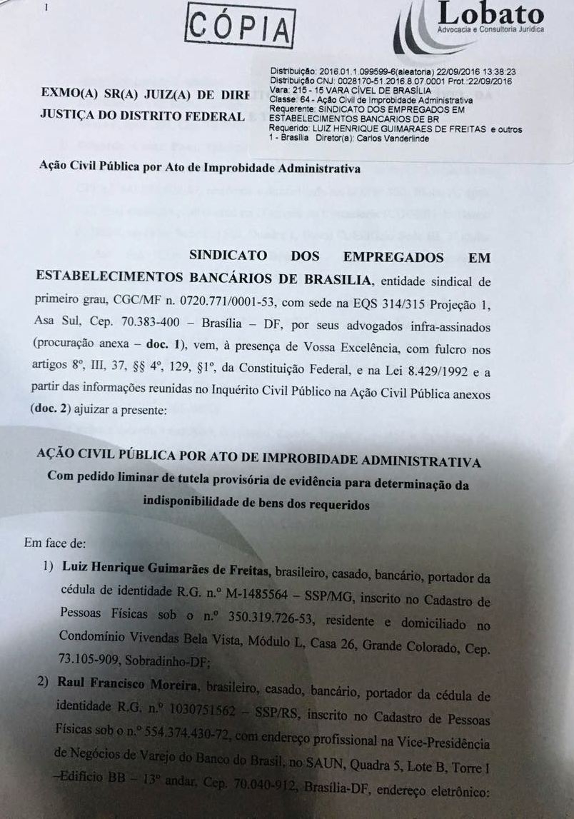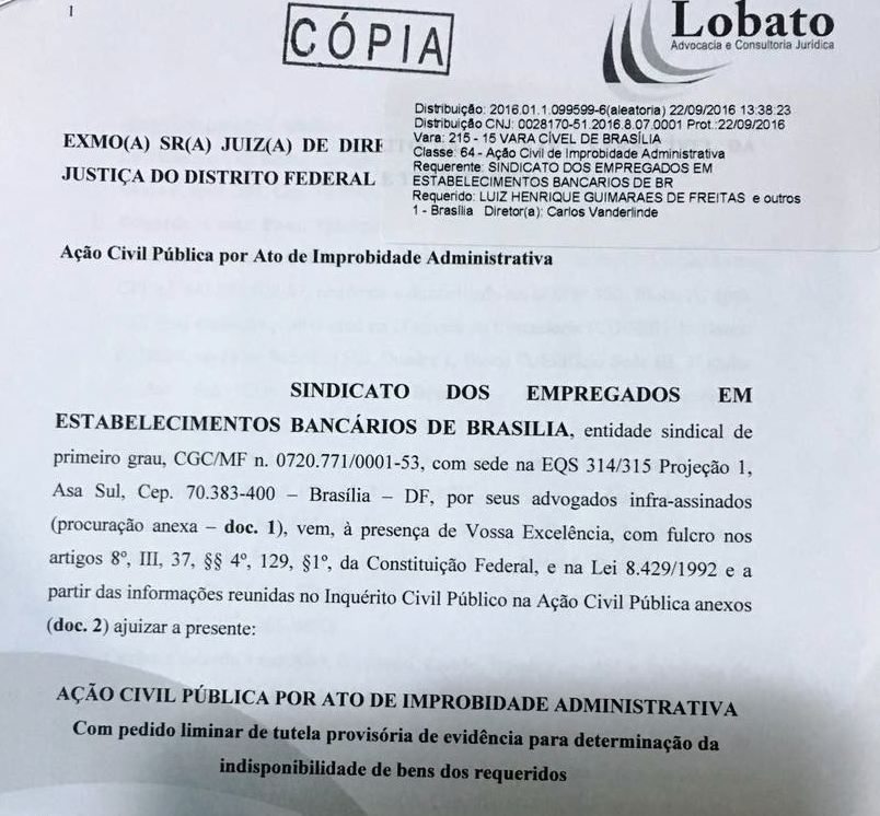 O Sindicato entrou na justiça com ação de improbidade administrativa contra diretores do Banco do Brasil responsáveis pela demissão e descomissionamento de empregados que ingressaram com ação trabalhista contra o banco. Os diretores poderão, inclusive, ter, liminarmente, seus bens declarados indisponíveis para assegurar o pagamento da multa que pode vir a ser imposta como sanção em caso de condenação.