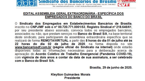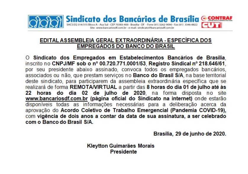 Após análise dos termos negociados em reunião realizada na manhã desta segunda-feira (29), por videoconferência, a diretoria do Sindicato dos Bancários de Brasília decidiu orientar a aprovação da proposta negociada pelo movimento sindical.