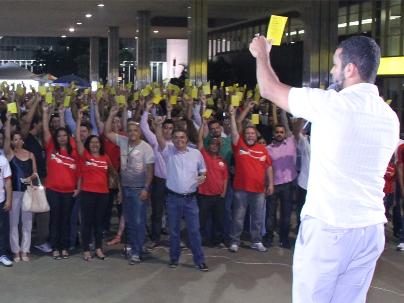 Em resposta aos seguidos ‘nãos’ dos banqueiros nas rodadas de negociações, os mais de 3 mil bancários e bancárias do Distrito Federal aprovaram, por ampla maioria, na noite desta quinta-feira (25), em assembleia realizada na Praça do Cebolão, no Setor Bancário Sul (SBS), indicativo de greve a partir da próxima terça-feira (30).