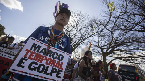 Entre outras pautas levantadas pelos indígenas nas manifestações está a denúncia dos assassinatos de jovens lideranças Guarani Kaiowá e a insegurança jurídica provocada pela discussão do Marco Temporal no STF e no Congresso - com a votação da PEC 48, que tenta alterar a constituição no artigo 231.