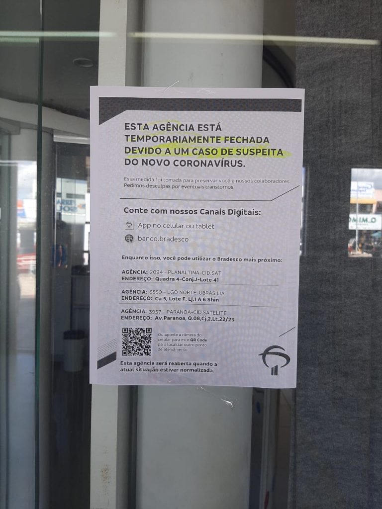 Após receber denúncia de que um dos funcionários que atendem na agência Sobradinho do Bradesco testou positivo para o diagnóstico da Covid19, o Sindicato compareceu na unidade nesta quinta-feira (14) para averiguar se todos os protocolos de segurança foram adotados. E, por precaução, fechou as portas do banco.