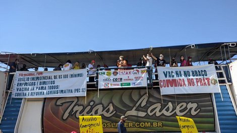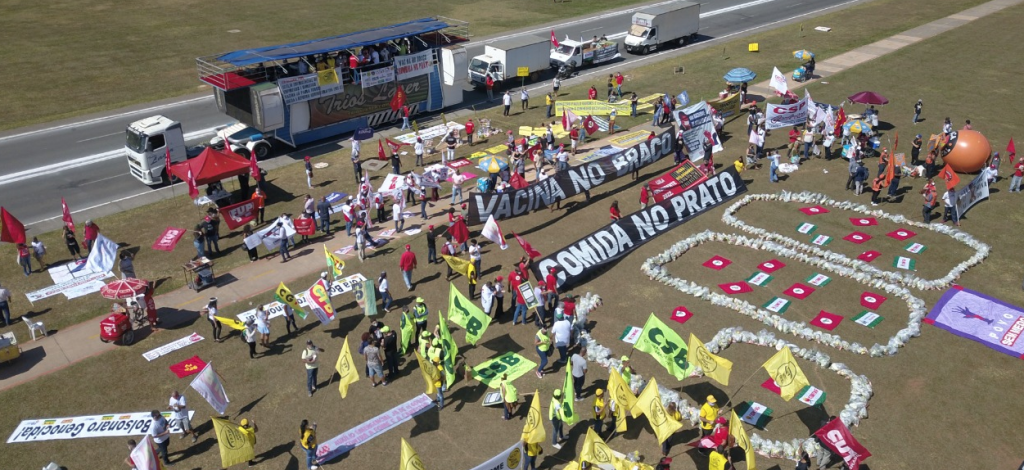Se o povo precisa ir às ruas protestar pela vida enquanto circula um vírus que já matou mais de 450 mil pessoas, é porque o governo ameaça e é muito mais perigoso. E foi contra todos os riscos que Jair Bolsonaro representa para os brasileiros e brasileiras que trabalhadores das mais distintas categorias fizeram grande ato nesta quarta-feira (26), na Esplanada dos Ministérios, pedindo vacina para todos, comida no prato e auxílio emergencial decente.
