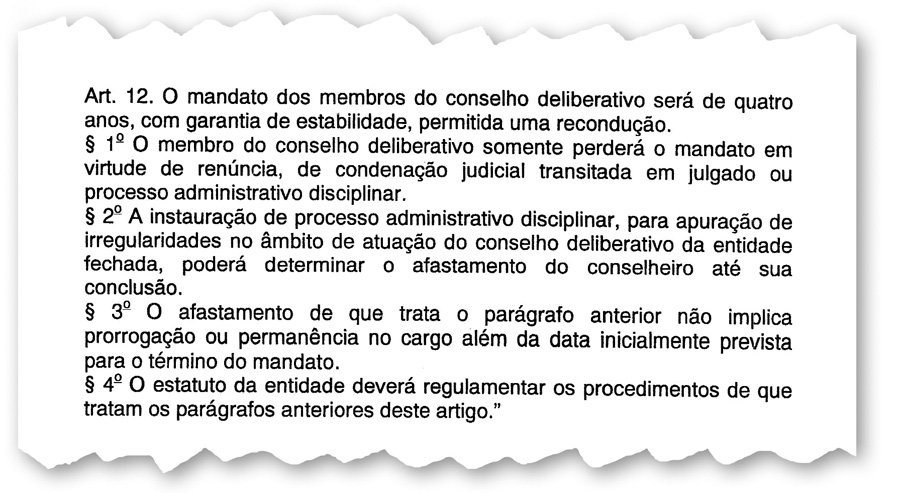 O parecer de Edward Marcones Santos Gonçalves afronta as leis complementares 108 e 109, que regulam os fundos de pensão no país e determinam a forma de perda de mandato dos conselheiros. Veja aqui o fac-símile.