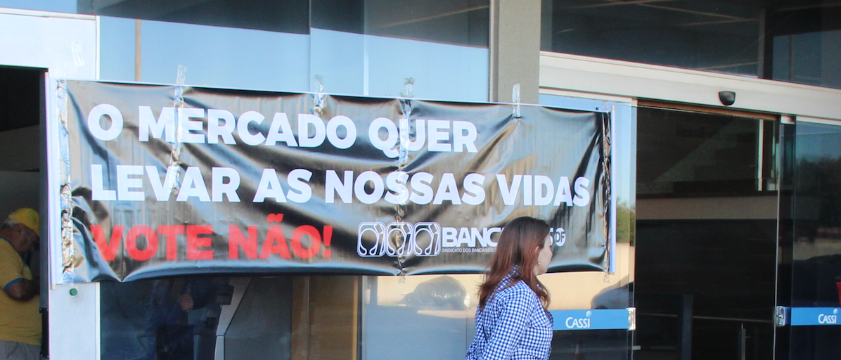 A sede da Cassi em Brasília amanheceu no dia 20 de julho de 2018 em clima de protesto. Associados, com o apoio do Sindicato dos Bancários de Brasília e da Contraf-CUT, denunciavam a tentativa do Conselho Deliberativo de votar o aumento da coparticipação e implantação da CGPAR 23 na Caixa de Assistência dos Funcionários do Banco do Brasil.